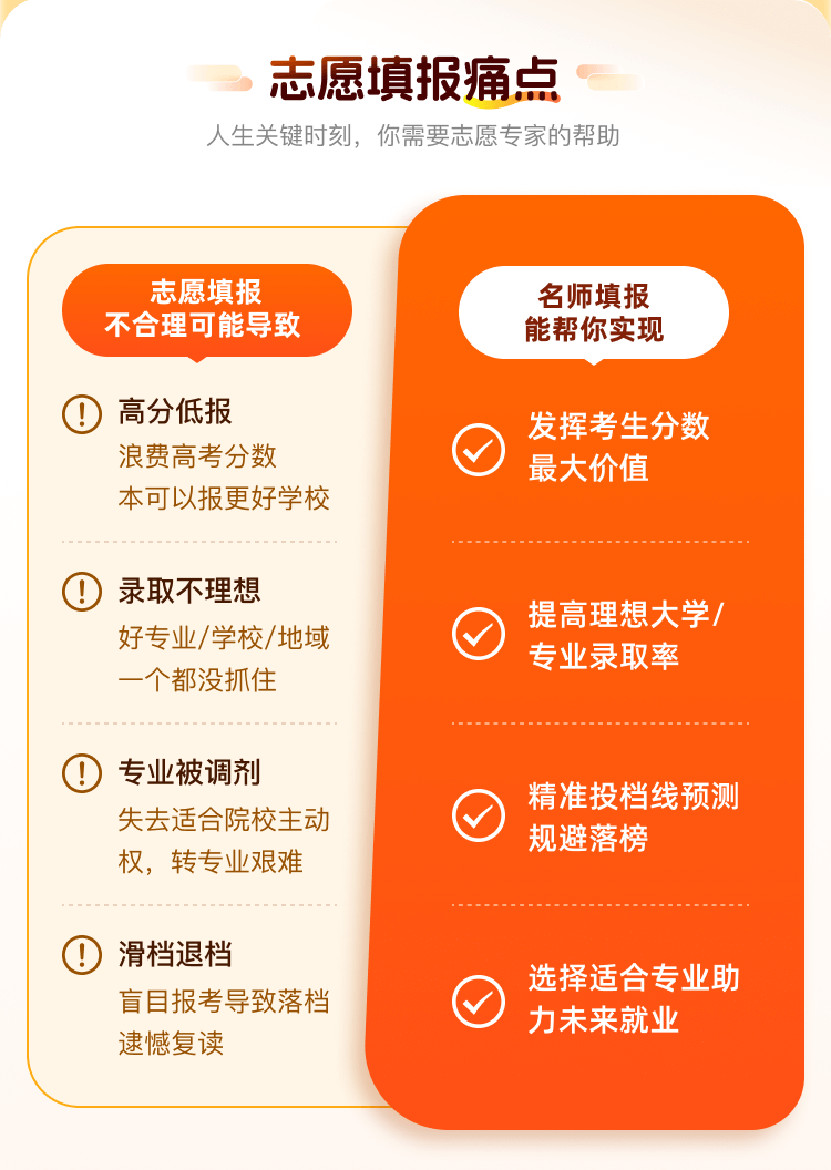 我们一项针对志愿填报有指导需求的家长及考生量身定制高考志愿的线上高品质服务。我们通过收集考生精准意向,再由资深专家和考生充分沟通意向,为考生设计专属志愿方案,达到高考志愿专业定制、科学合理且省心省钱的效果。
